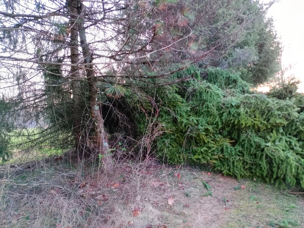 We had huge wind storms today – 85mph up at the airport. It was gusty all day, but it really picked up in the afternoon. I was working and heard wind noise. I looked out the window and saw a wall of brown that I realized was all of the dead needles blowing off the pine trees along the south side of our back yard. Then the trees all started to lay down – the willow first, but then the pines started reaching for the ground. One popped and flopped into the grass as the gust subsided and all of the other trees stood up.